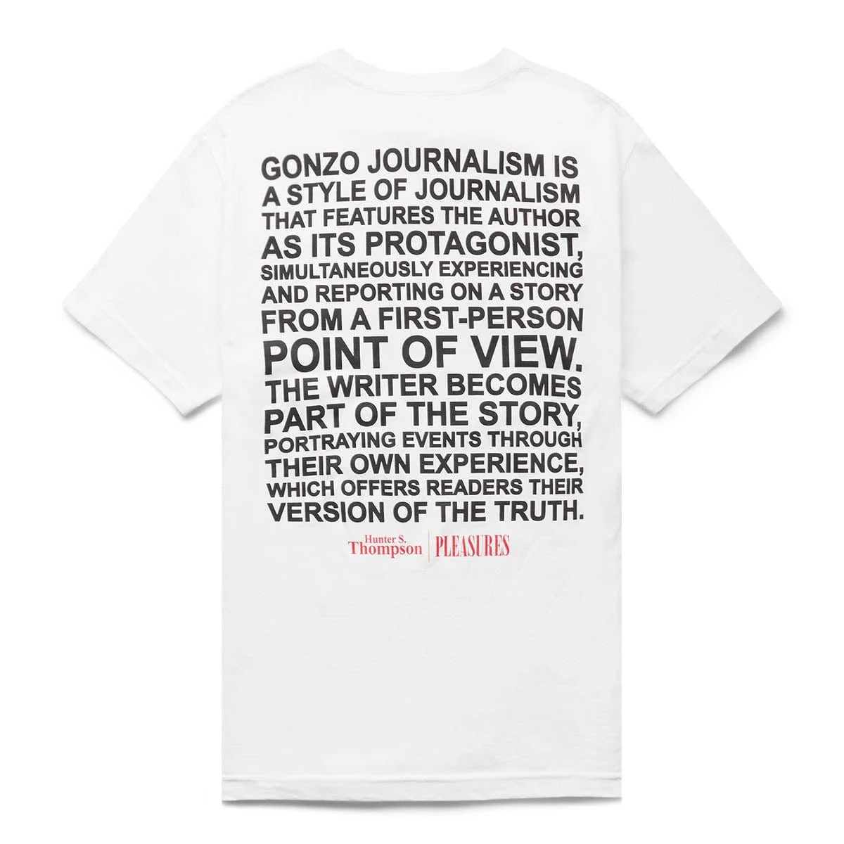 Made in collaboration with the estate of Hunter S. Thompson, Pleasures brings the badge t-shirt with a unique graphic printed on the front.