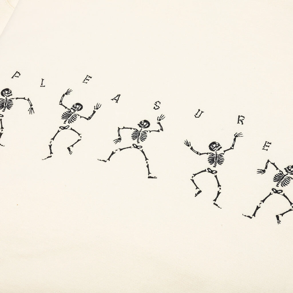 - Embroidered PLEASURES logo and skeleton design