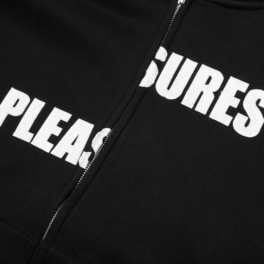 The Pleasures Evolution Zip Up Hoodie is a must-have apparel silhouette. Made from cotton and polyester, the hoodie utilizes a double zipper along with felt Pleasures logo applique at the front. The embroidered text at the rear paired with the ribbed trims and front pocket finishes up the rest of the silhouette.