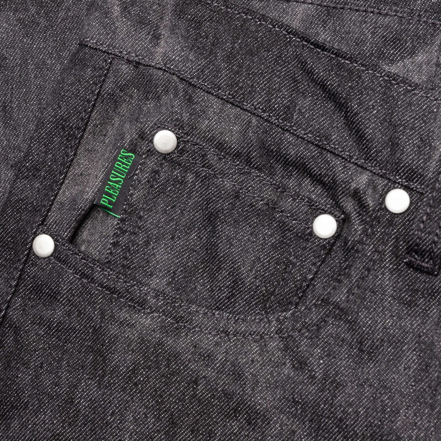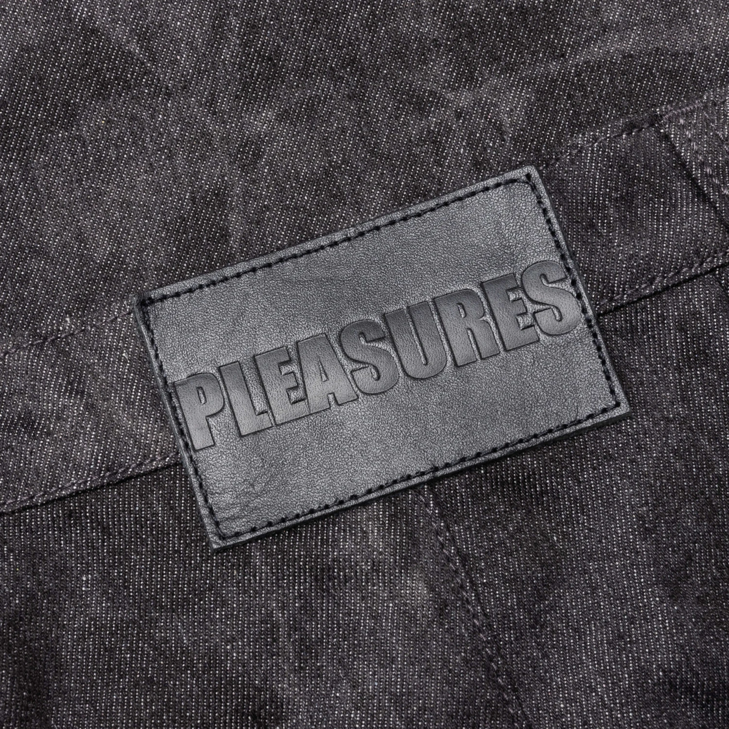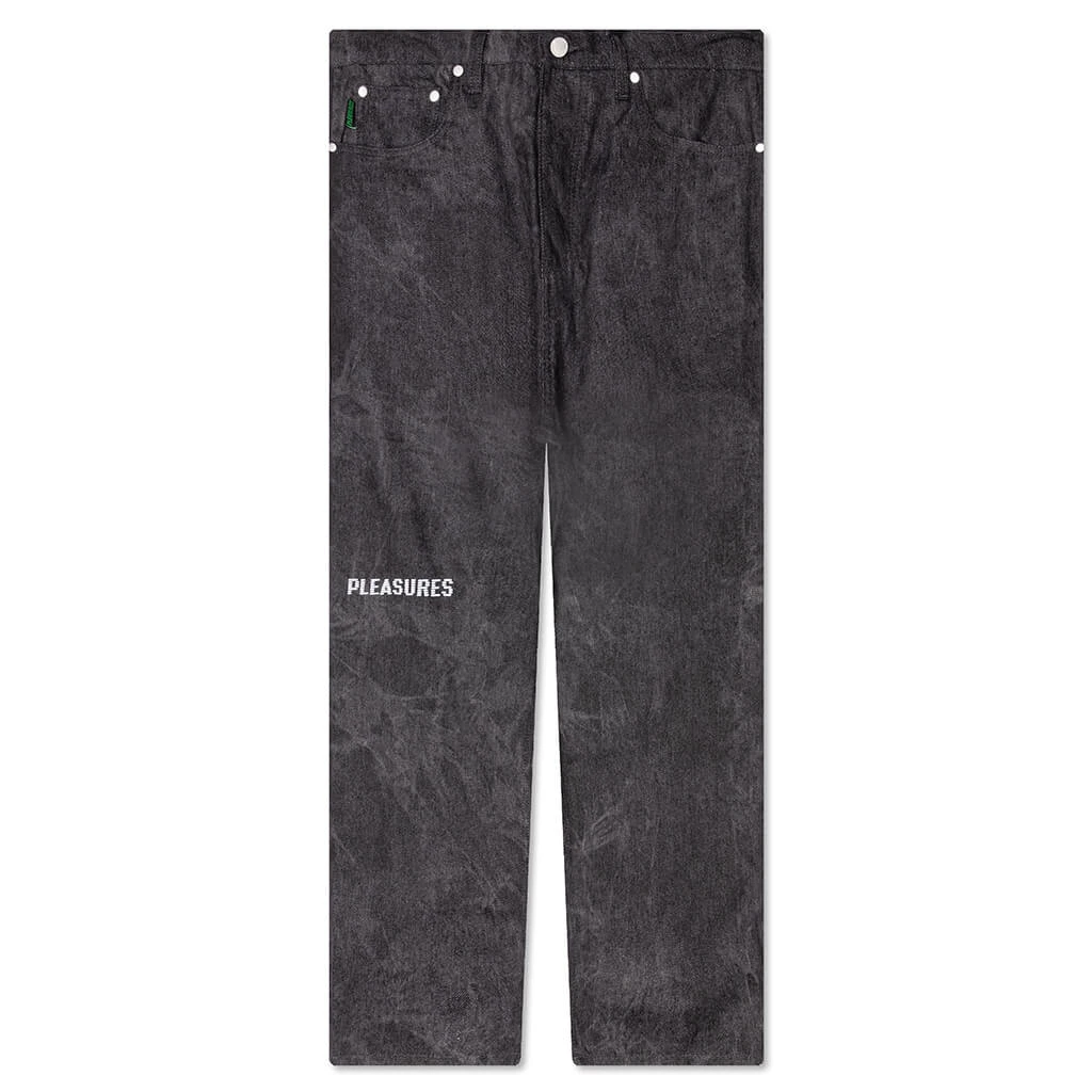 Introducing the Pleasures Formula Baggy Denim in Black. These jeans are your ultimate style formula, blending comfort and edgy aesthetics. Crafted from high-quality denim, they feature a relaxed, baggy fit for a laid-back vibe. The black wash adds versatility to your wardrobe. With a signature Pleasures twist, these jeans sport unique distressing details and bold logo accents, making them a standout choice for streetwear enthusiasts. Upgrade your street style with these Formula Baggy Denim jeans.
