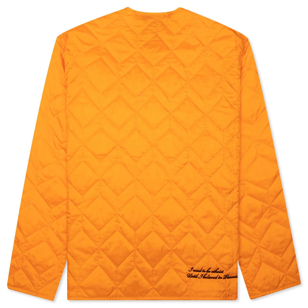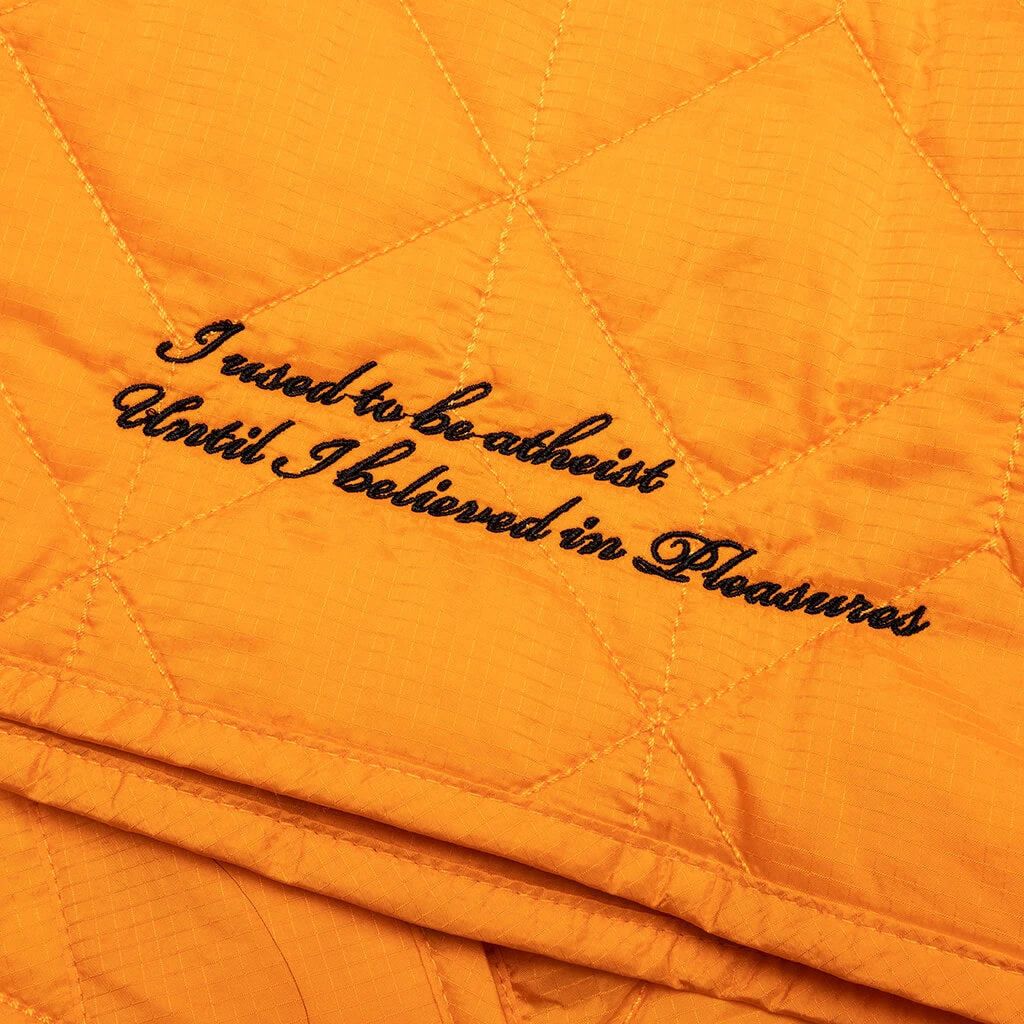 PLEASURES’ signature aesthetics are present in the Lasting Linear Jacket. Composed of ripstop nylon, the enzyme-washed and custom-dyed silhouette incorporates an embroidered PLEASURES logo on the chest in addition to further embroidered text at the rear. The button-down closure finishes the design.