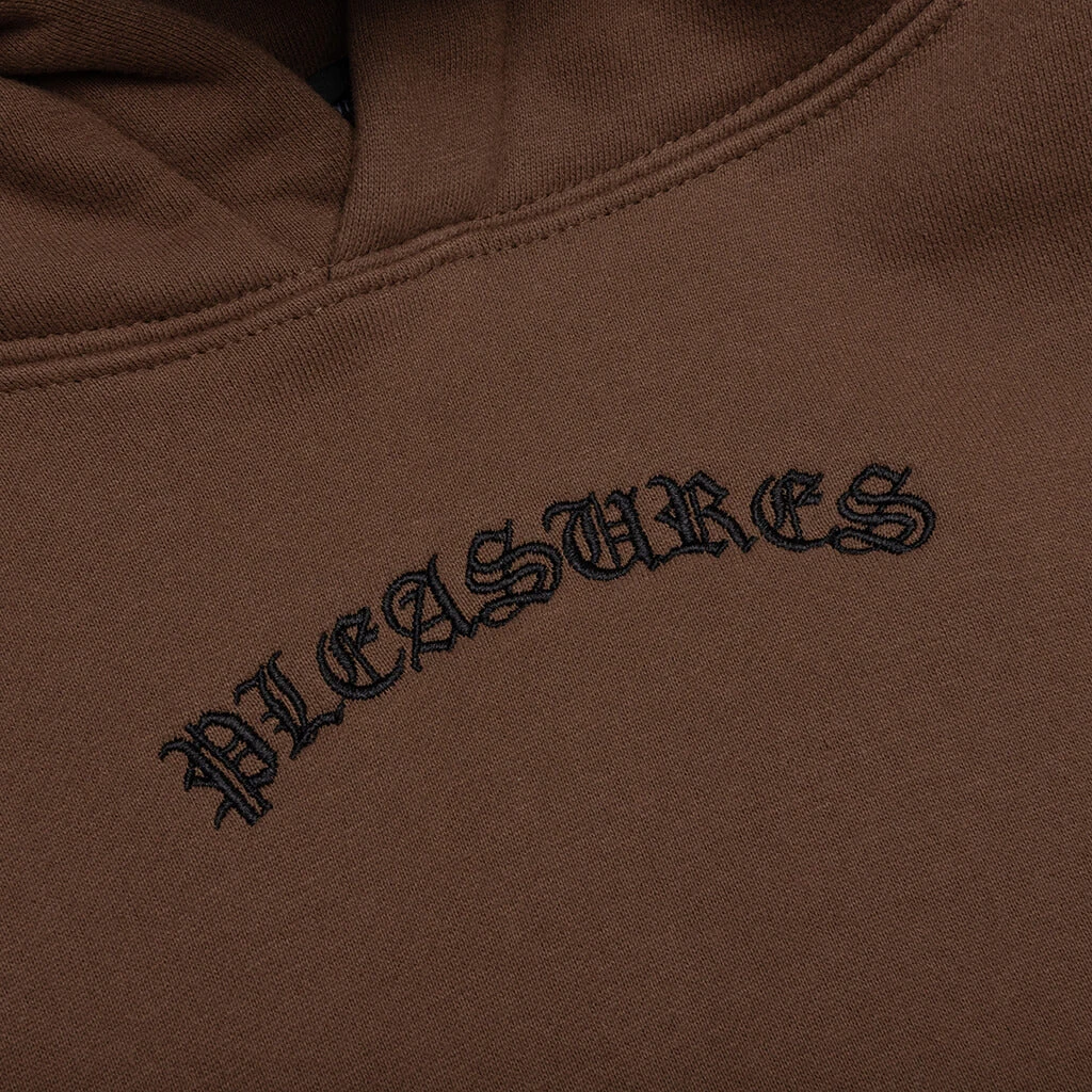 Introducing the Pleasures Neural Hoodie in Brown. Elevate your streetwear game with this hoodie that’s both comfortable and fashion-forward. Crafted from high-quality materials, it features a sleek black design, perfect for any occasion, showcasing Pleasures’ distinctive style. With a cozy hood and a relaxed fit, this hoodie ensures both warmth and style. Make a bold statement in the Neural Hoodie, a must-have.