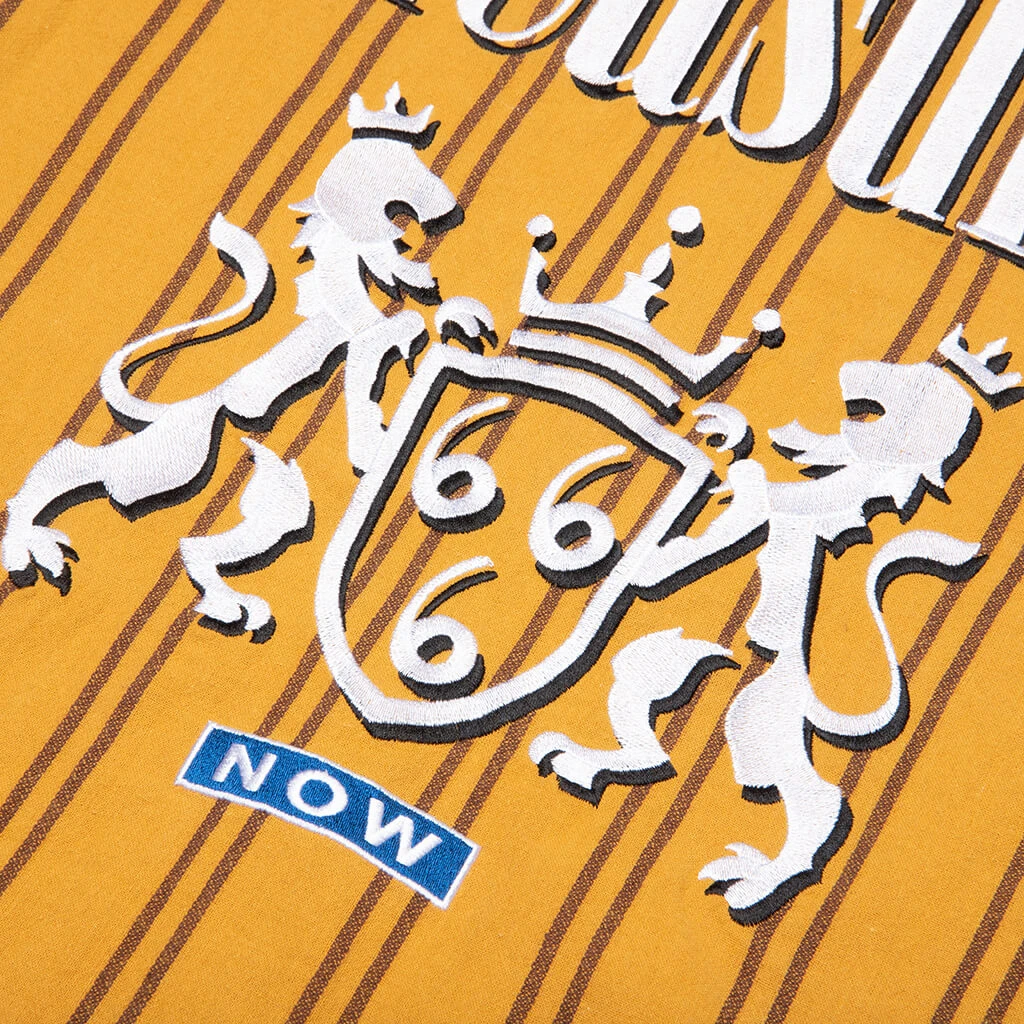 PLEASURES is known for creating pieces that show vintage and modern nostalgia. The Ruby Work Shirt features an all-over stripe print that coincides with the embroidered logo at the middle of the silhouette. Two front pockets are seen as well as a large embroidered graphic at the front, completing the design.