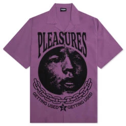 Upgrade your everyday apparel rotation with the PLEASURES Used Button Down. The silhouette spotlights screen-printed branding, graphics, and the following typography at the front: “Getting Used 2 Getting Used.” A spread collar is placed, while the button-down closure and polyester blend finish the look.