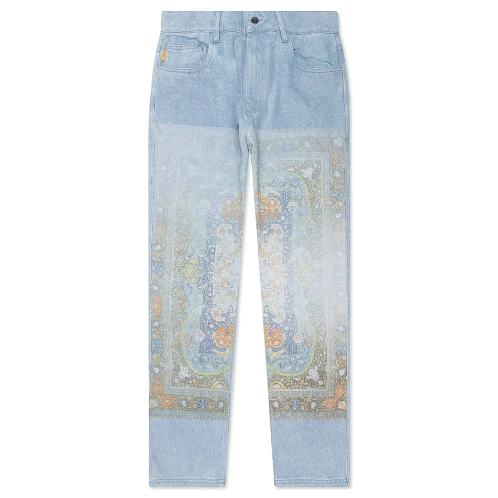 Elevate traditional denim with the Walk On Me Denim Jeans. Pleasures eclectic design is printed throughout with a washed appearance. Its denim construction features a 5 pocket classic style and straight leg design for a more relaxed fit.