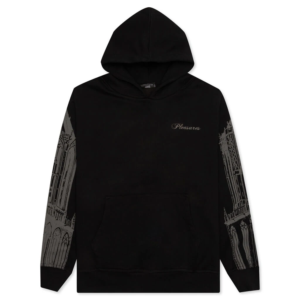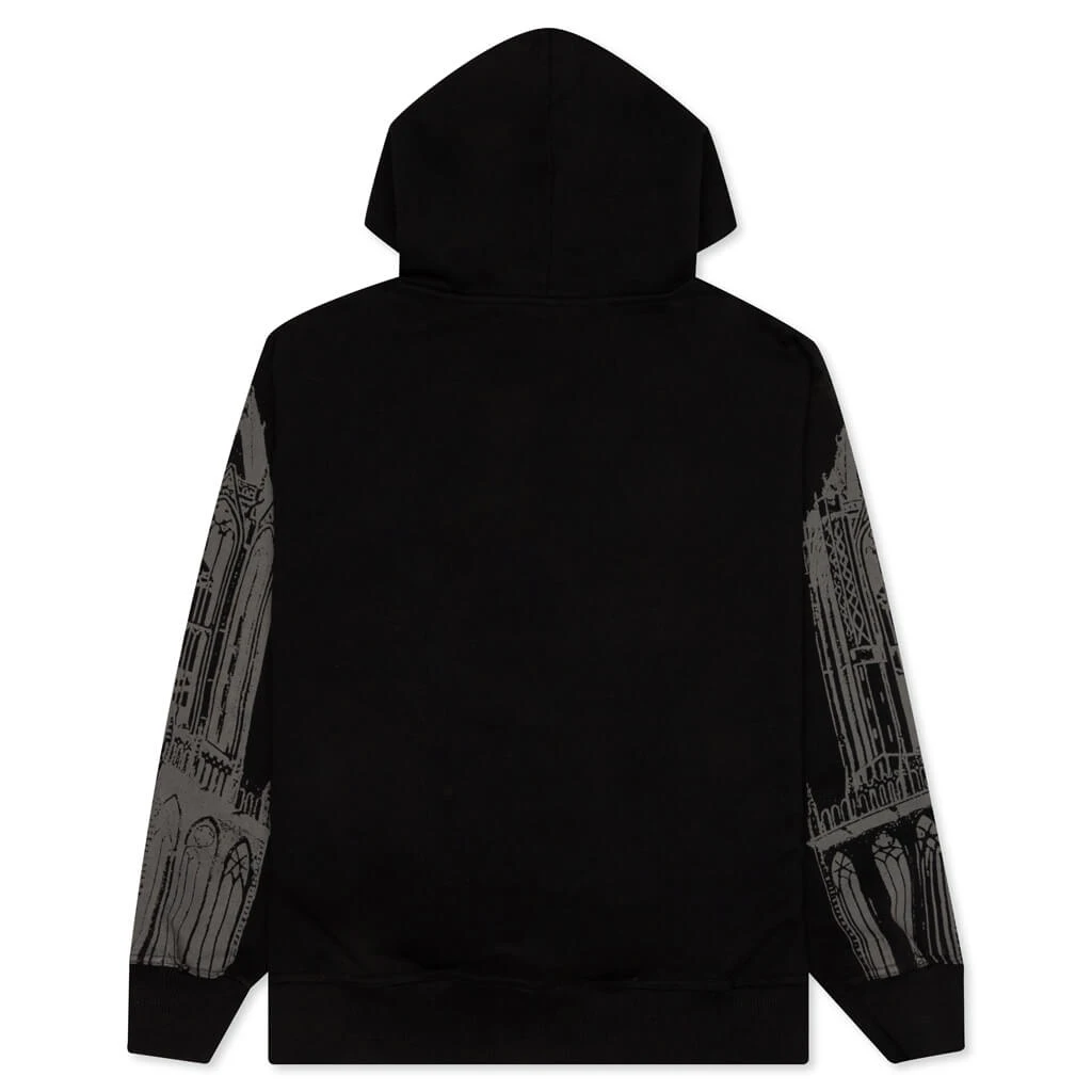 The Pleasures Warsaw Hoodie incorporates an elevated approach to the traditional silhouette. Featuring a 380 GSM washed fleece construction, the silhouette features a full Paris Cathedral drawing at the sleeves, while screen-printed branding is placed at the chest. Made for a relaxed fit, the design features ribbed cuffs, hem, and a kangaroo pocket for a detailed aesthetic.