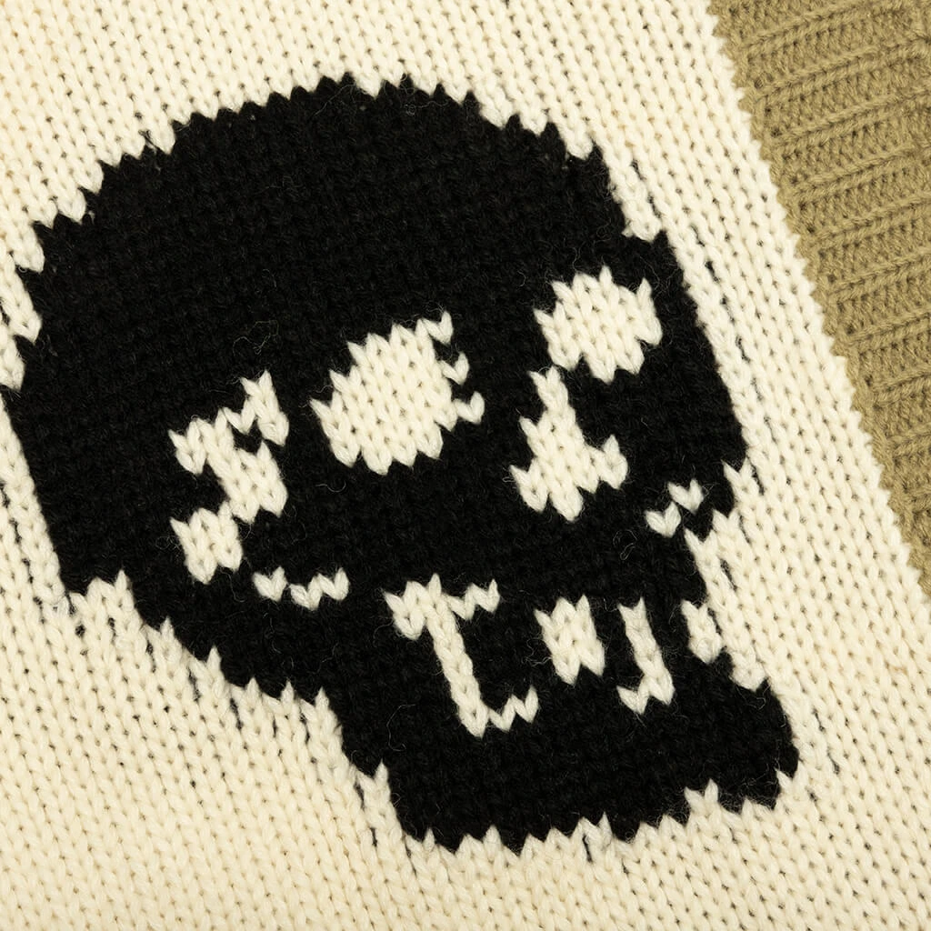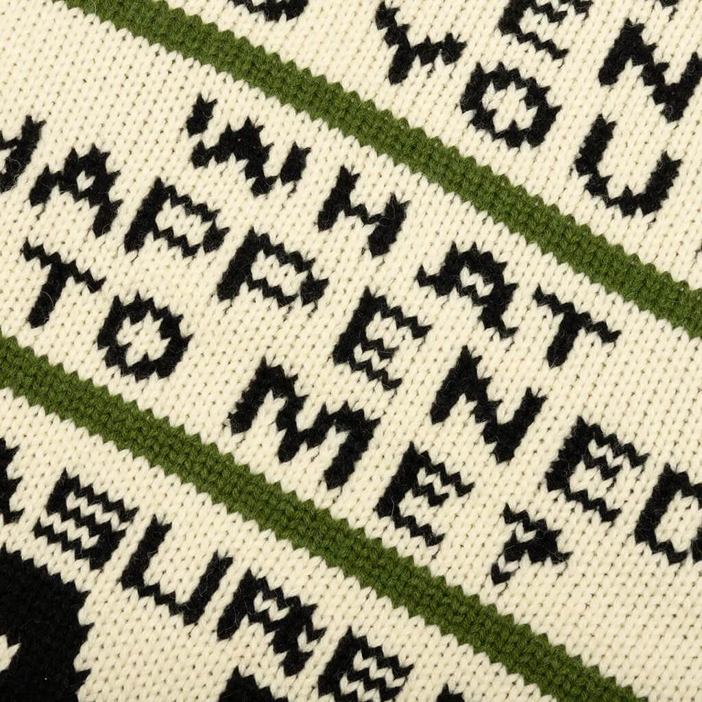 The Pleasures Wisdom Zip Cardigan makes an impression on any streetwear apparel collection. The design is composed of heavy knit thick gauge cotton and includes a vintage style zipper for added detail. The jacquard graphics and typography make an impression for a finished look.