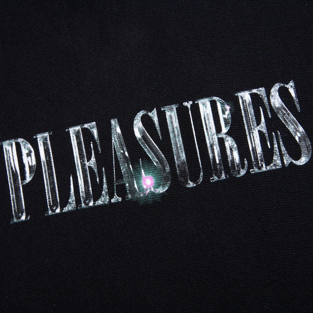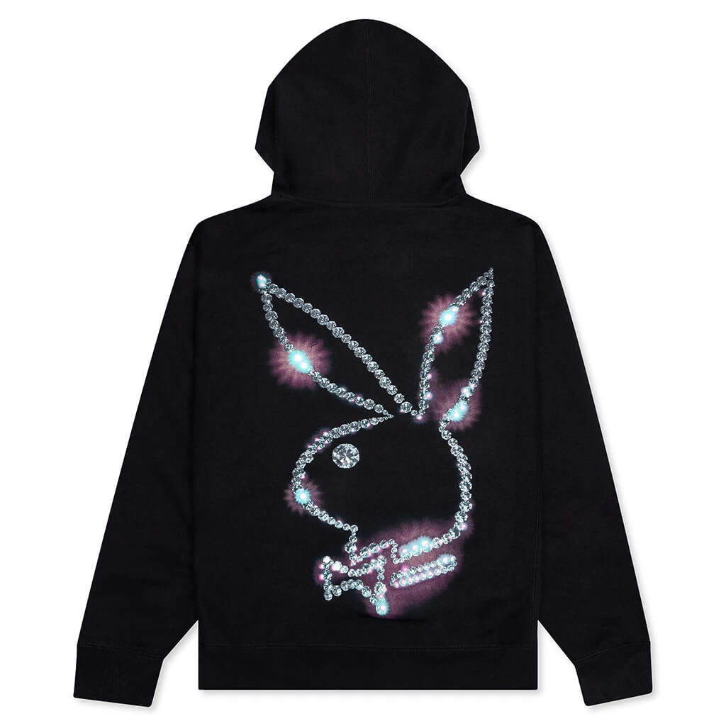 The PLEASURES x Playboy Icy Hoodie makes a statement within any hoodie collection. Featuring a cotton construction, the design sports a drawstring hood along with ribbed details at the cuffs and hem. A kangaroo pocket appears for additional functionality. Distinct screen-printed PLEASURES is at the front, while the iconic Playboy bunny makes a statement at the rear.
